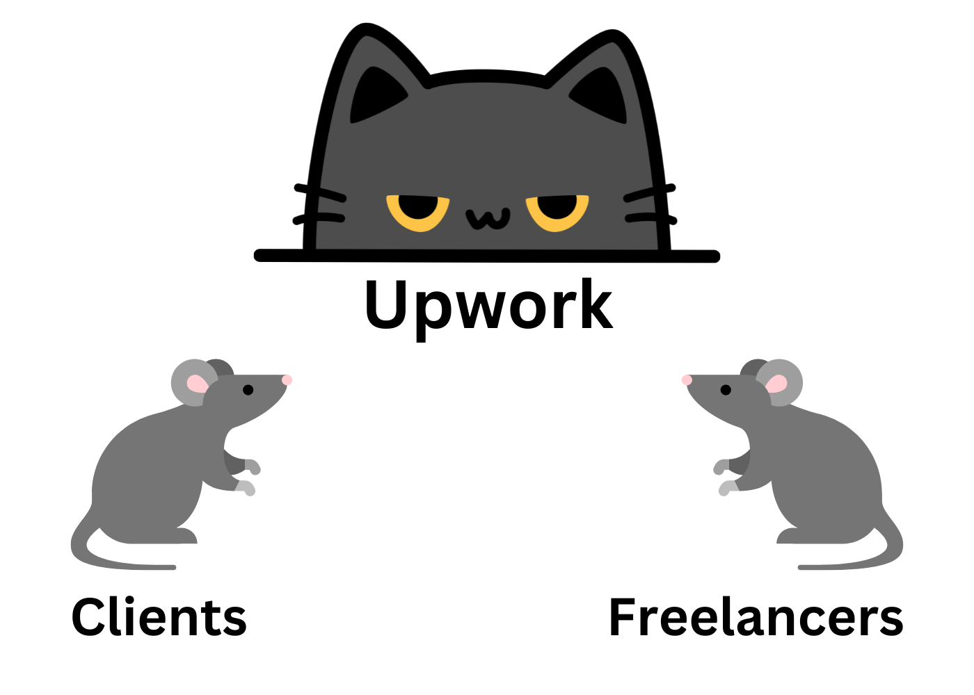 But here’s the twist: neither freelancers nor clients are truly “winning” this game. Upwork itself is the cat, setting up obstacles, rules, and a whole economy around how landing a job is done, while we’re all the mice, trying to outsmart the system in our own ways.