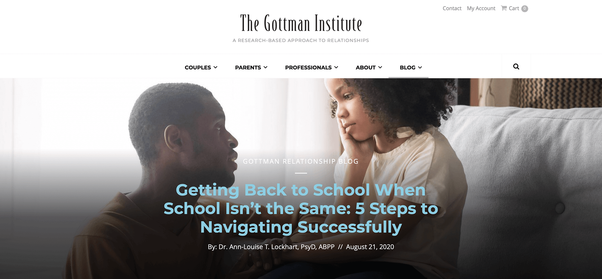The Gottman Relationship is the blog of the Gottman Institute, and they describe their blog as, “A research-based approach to relationships”. The institute is an organization that is, “committed to an ongoing program of research that increases the understanding of relationships and adds to the development of interventions that have been carefully evaluated.”